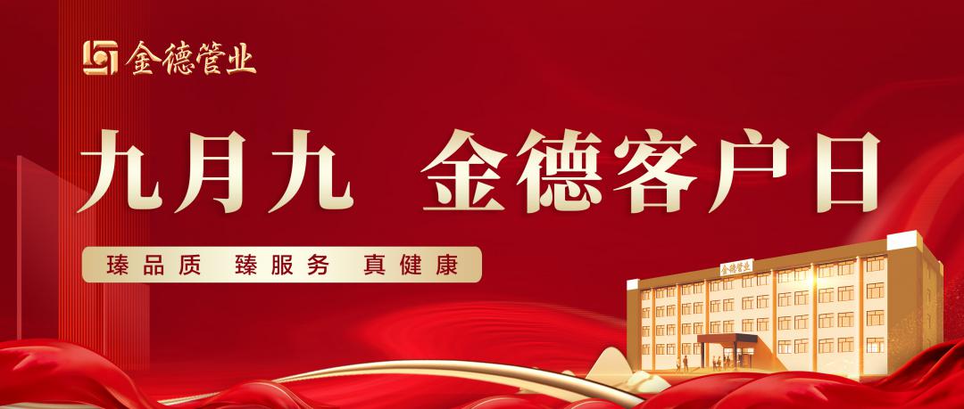 2023-10-02 金德管業集團 3141金德管業集團首屆“九月九客戶日”將于2023年9月9日與廣大客戶相約!本次活動,我們將帶來豐盛的福利回饋,提供高品質客戶福利,搭建開放的互動橋梁,持續擦亮金德管業“瑧品質 臻服務 真健康”品牌形象。